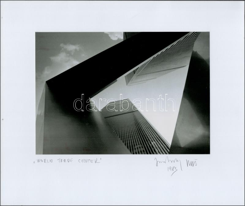 1983 Jankovszky György(1946-): New York, World Trade Center, feliratozva, aláírt, pecséttel jelzett, kartonra kasírozva, 18x25 cm / New York, World Trade Center, with artist's stamp and signature on the verso, 18x25 cm