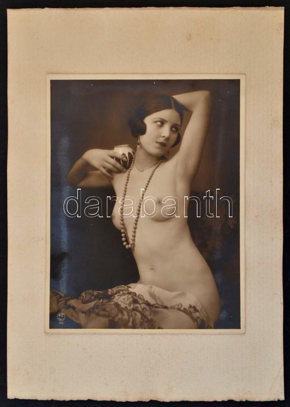 cca 1929 Demeter Károly (1892-1983) párizsi korszakában készült, jelzés nélküli vintage fotóművészeti alkotása, 22x17 cm, karton 34x24 cm / cca 1929 Károly Demeter (1892-1983): Nude, vintage photo, 22x17 cm