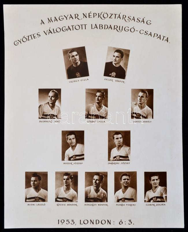 cca 1953 "A Magyar Népköztársaság győztes válogatott labdarúgó-cs... https://www.darabanth.com/hu/28-Nagyaukcio/28.1/Festmeny-mutargy-papirregiseg-egyeb/Foto~11241/cca-1953-A-Magyar-Nepkoztarsasag-gyoztes-valogatott-labdarugo-csapata-az-Aranycsapat-tabl~II1678349