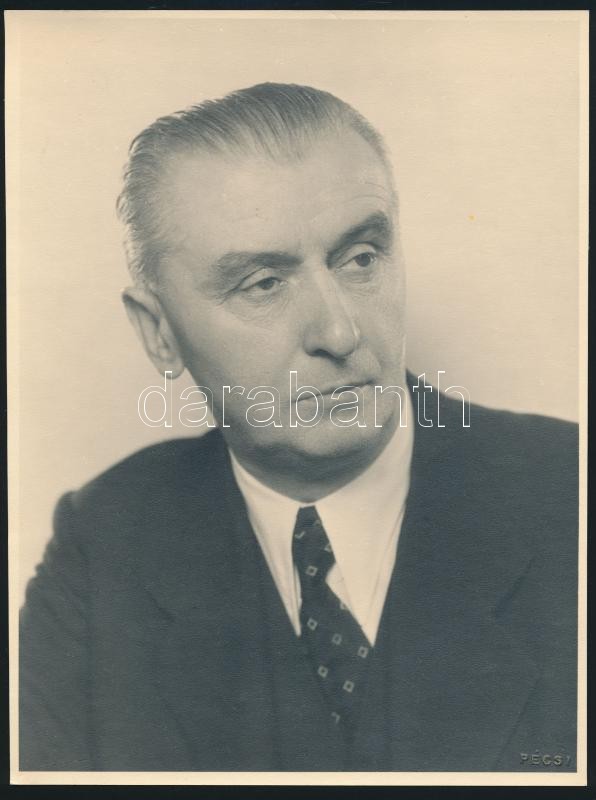 Leírás: dr. Kiss Ferenc (1889-1966) anatómiaprofesszort ábrázoló fotó. Pécsi József fotóművész szárazpecséttel jelzett munkája. 18x23 cm