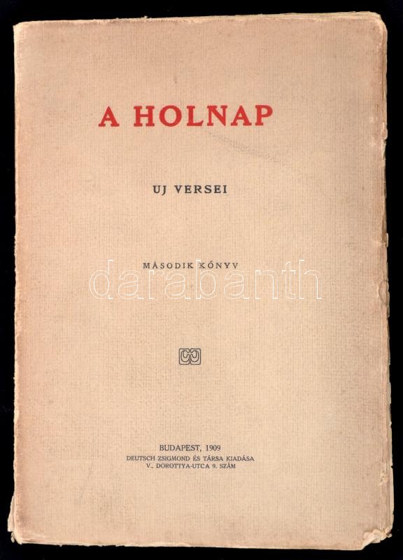 A Holnap új versei. Második könyv. Bp., 1909, Deutsch Zsigmond és Társa, Márkus Samu Könyvnyomdája, 240 p. Első kiadás. Kiadói papírkötés, szakadt borítóval, laza fűzéssel, ex libris-szel. Kollányi Boldizsár bevezetőjével. Ady Endre, Babits Mihály, Balázs Béla, Dutka Ákos, Emőd Tamás, Juhász Gyula, Miklós Jutka verseivel.