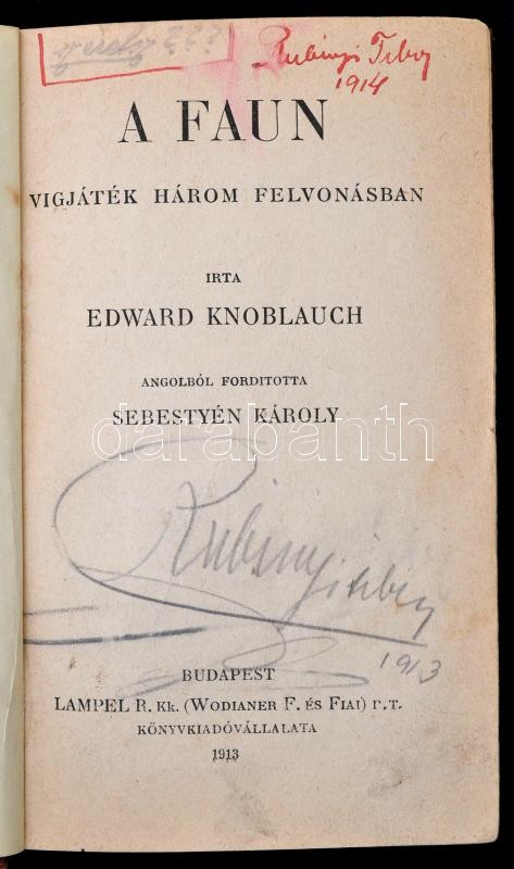 Edward Knoblauch: A faun. Vígjáték három felvonásban. Fordította: Sebestyén Károly.+