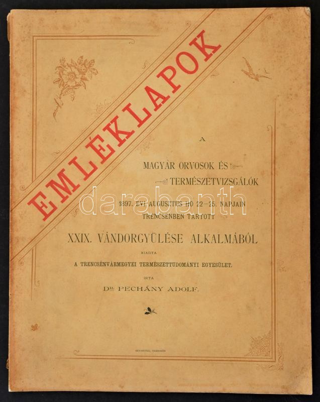 Pechány Adolf: Emléklapok, a Magyar Orvosok és Természetvizsgálók 1897. évi augusztus hó 22-25. napján Trencsénben tartott XXIX. vándorgyűlése alkalmából. [Trencsén], 1897, Trencsénvármegyei Természettudományi Egyesület. PapÃrkötésben, számos fekete-fehér illusztrációval, felvétellel, jó állapotban.