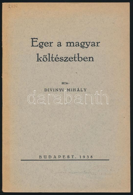 Divinyi Mihály: Eger a magyar költészetben. Bp., 1938, Budai-Bernwalln... https://www.darabanth.com/hu/28-Nagyaukcio/28.1/Festmeny-mutargy-papirregiseg-egyeb/Konyvek-Utazas-helytortenet~11237/Divinyi-Mihaly-Eger-a-magyar-kolteszetben-Bp-1938-Budai-Bernwallner-Nyomda-Tuzott-papirk~II1650898