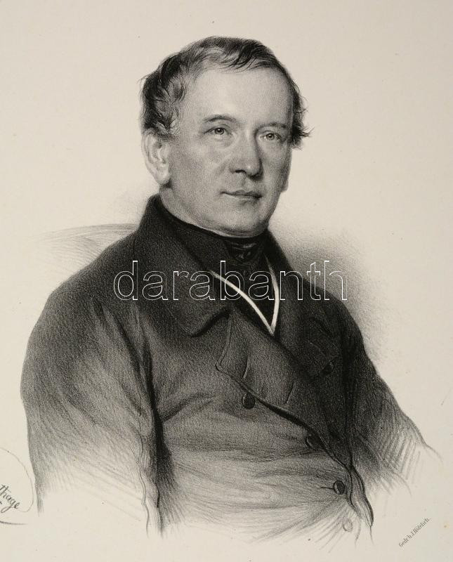 1853 Joseph Chmel (1798-1858) Osztrák történész, levéltáros nagyméretű kőnyomatos portréja. Adolf Dauthage litográfiája / 1853 Joseph Chmel (1798-1858) Austrian historian, archiver's large lithographic image. page size: 34x49 cm