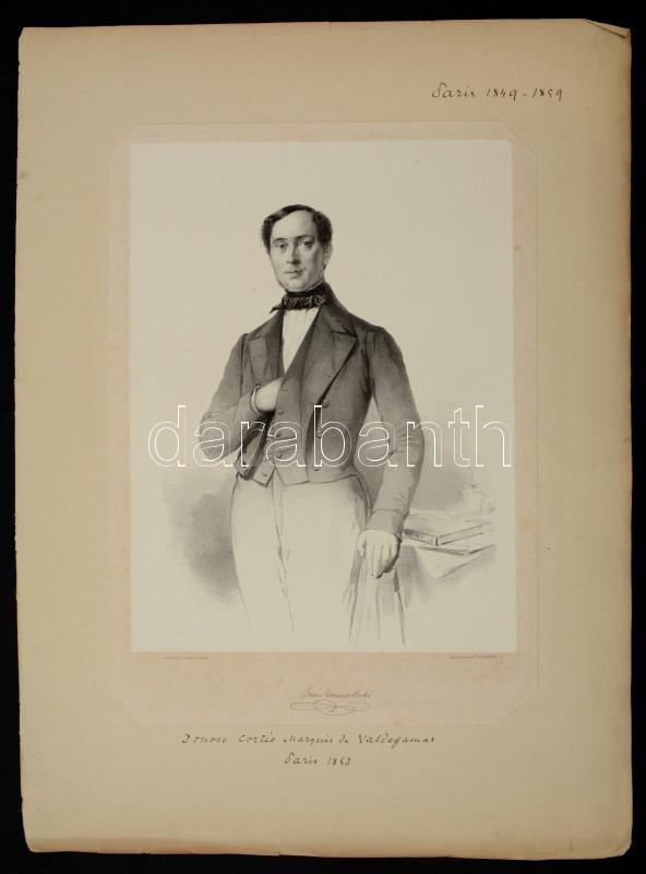 1853 Juan Donoso Cortés, marqués de Valdegamas (1809-1853) spanyol államférfi, teoretikus nagyméretű kőnyomatos portréja./ Juan Donoso Cortés, marqués de Valdegamas (1809.1853) Spanish politican, theoretic's large lithographic image. image size: 27x34 cm