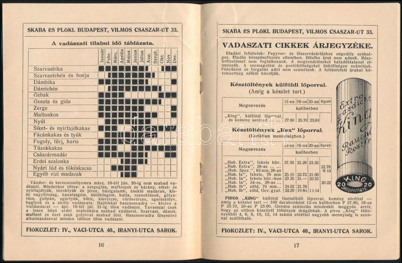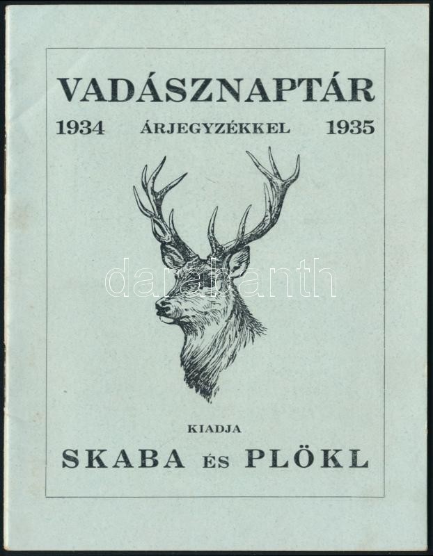 1934-1935 Vadásznaptár árjegyzékkel 1934-1935. Bp., Skaba és Plökl. Ki... https://www.darabanth.com/hu/28-Nagyaukcio/28.1/Festmeny-mutargy-papirregiseg-egyeb/Militaria~11299/1934-1935-Vadasznaptar-arjegyzekkel-1934-1935-Bp-Skaba-es-Plokl-Kiadoi-papirkotes-32-p~II1612478