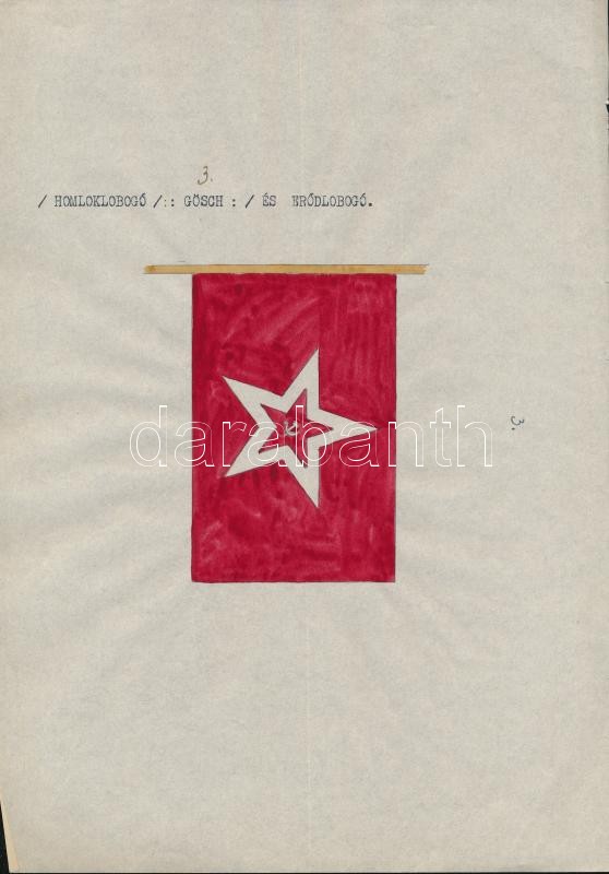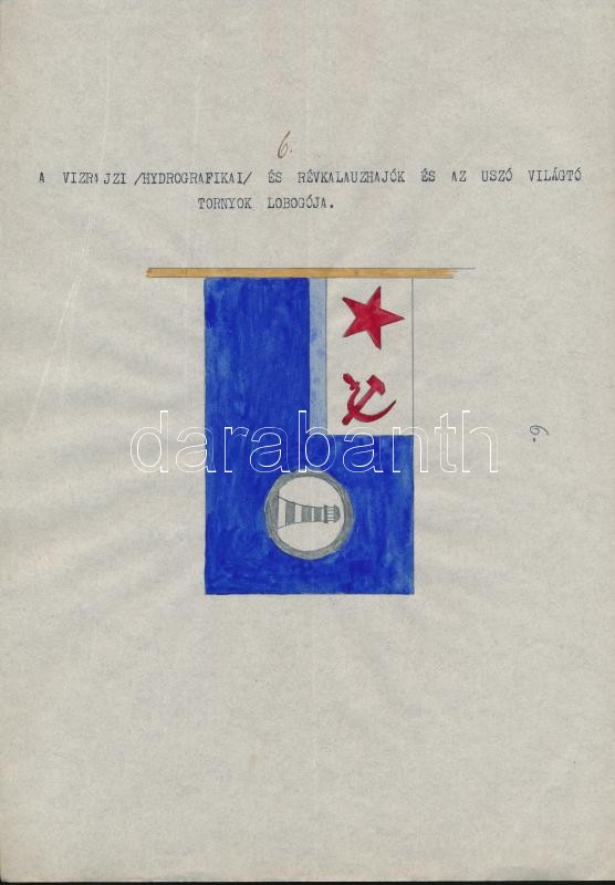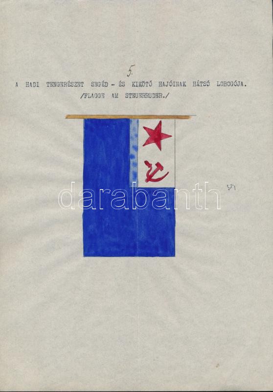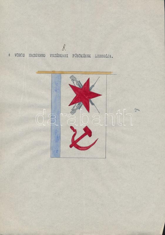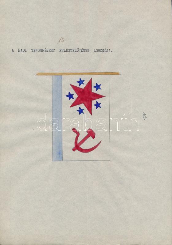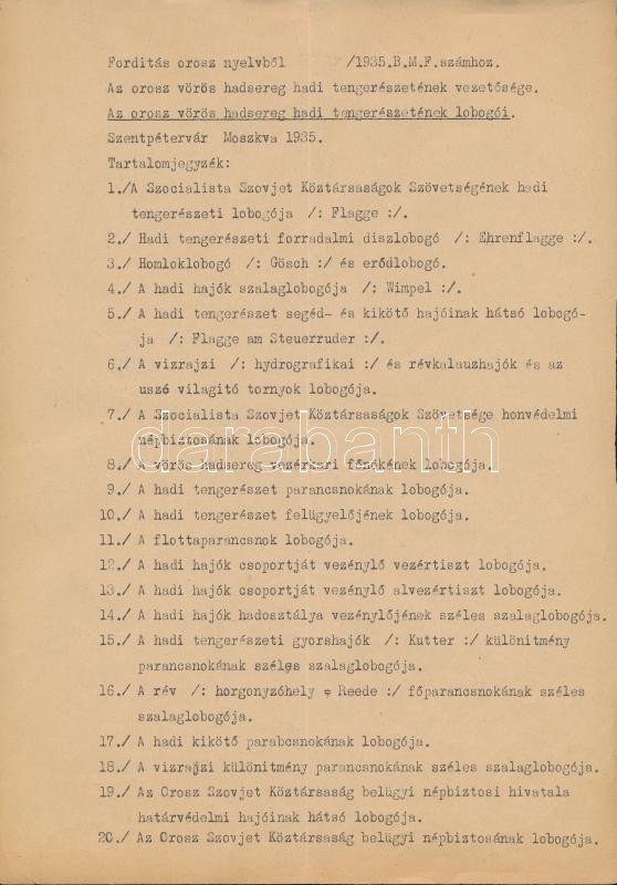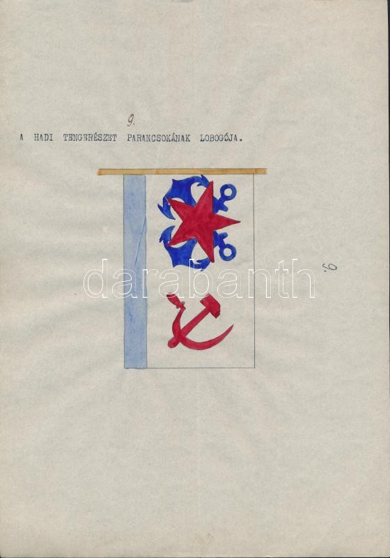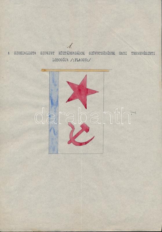 1935 A szovjet Vörös Hadsereg haditengerészetének lobogói. Magyar összeállítású leltár. 20 db kézi rajzzal és egy összefoglaló oldallal / 1935 Flags of the Soviet Red Army's navy. 20 hand drawn flags and one list.