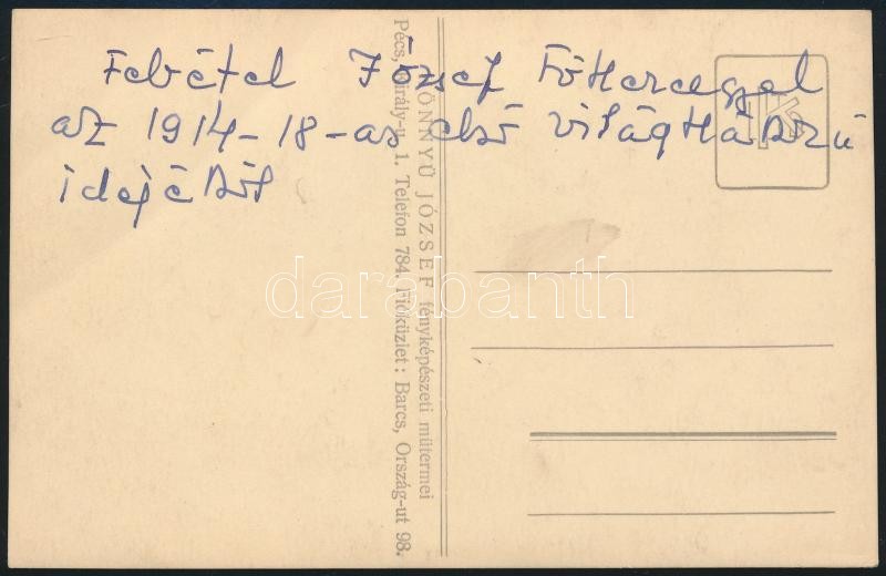 cca 1914 József főherceg tisztek körében, fotólap, hátulján feliratozva, 9×14 cm / Archduke Joseph among officers, photograph with notes on its back, 9×14 cm