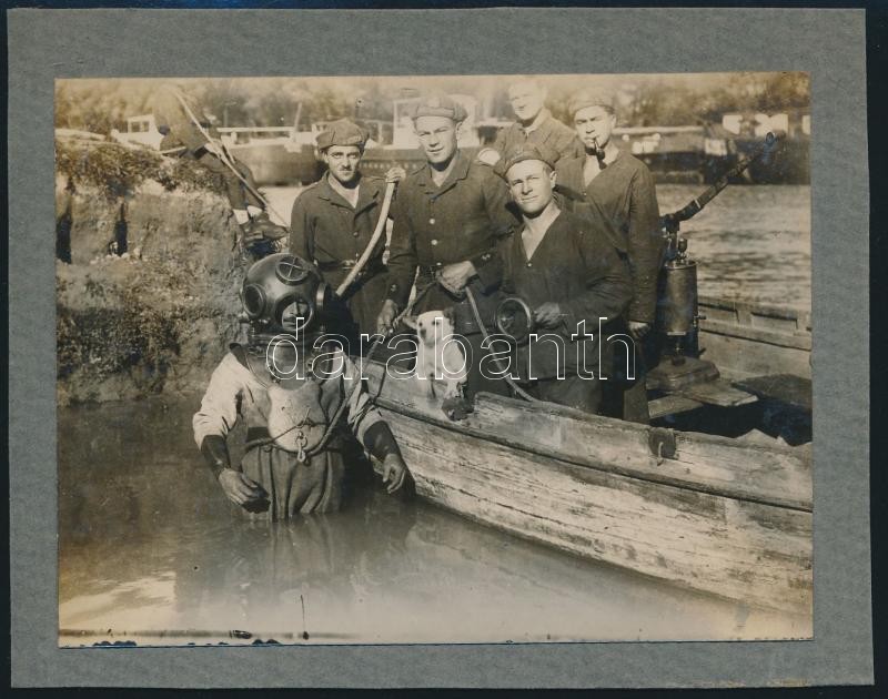 cca 1920-1930 Magyar királyi folyamőrök csoportképe, egyikük búvárruhá... https://www.darabanth.com/hu/28-Nagyaukcio/28.1/Festmeny-mutargy-papirregiseg-egyeb/Militaria~11299/cca-1920-1930-Magyar-kiralyi-folyamorok-csoportkepe-egyikuk-buvarruhaba-oltozve-hatolda~II1679761