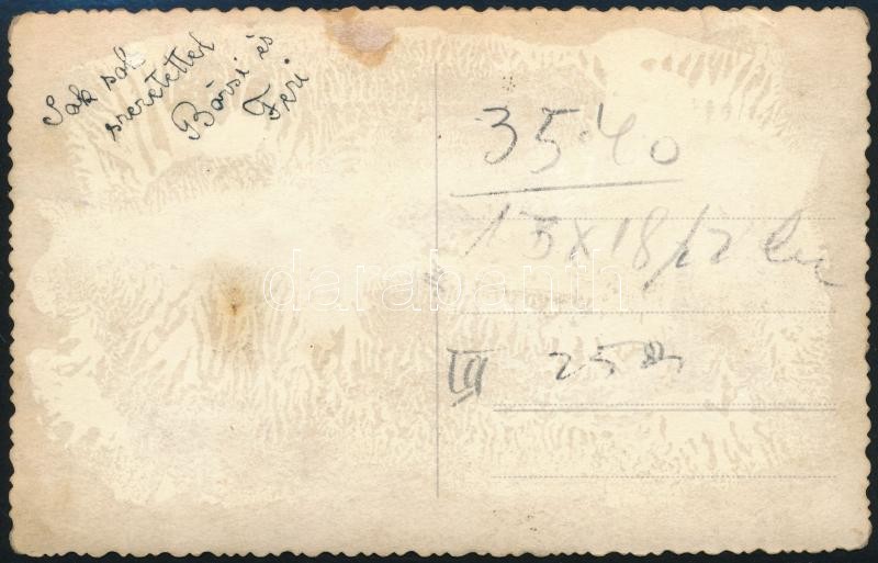 Leírás: cca 1930-1940 Ejtőernyős katona fotója, hátulján feliratozva, 8,5×13,5 cm
