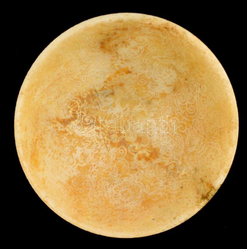 Leírás: Kínai alabástrom ivócsésze, mintákkal, alján jelzéssel / Chinese alabaster bowl with patterns d: 11 cm