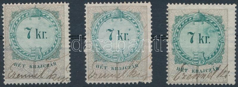 Leírás: 1881 3 db 7kr vésésjavítással / 3 x 7kr with retouches