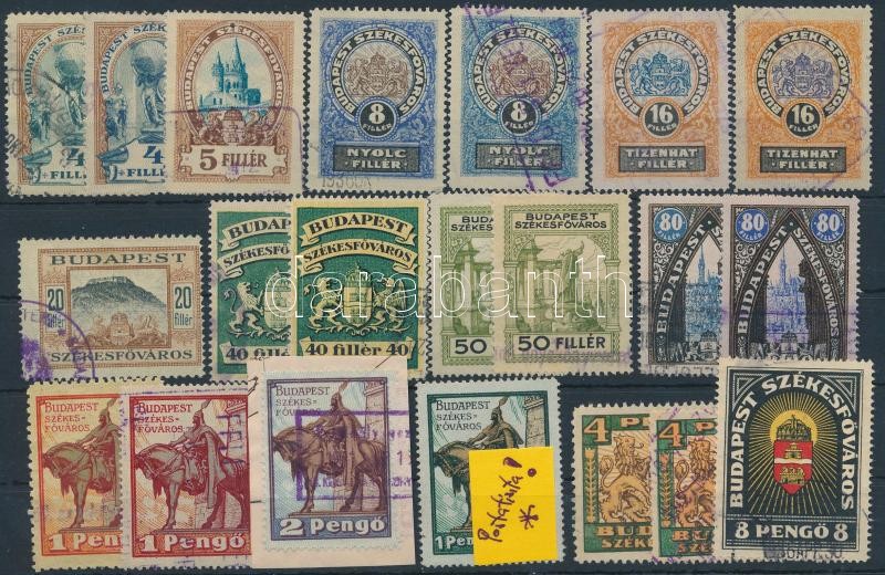 Leírás: 1927 21 db Budapest okmánybélyeg színváltozatokkal / with colour varieties