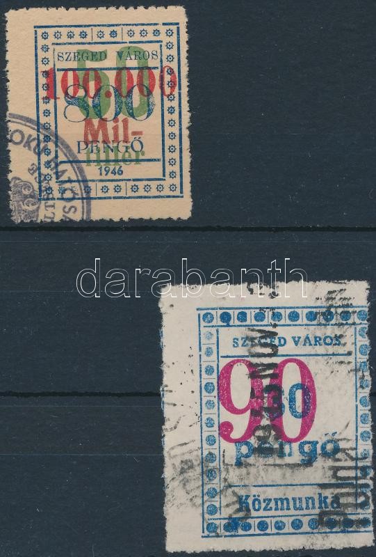 Leírás: 1945-1946 2 db Szeged városi illetékbélyeg / Szeged 2 local fiscal stamps