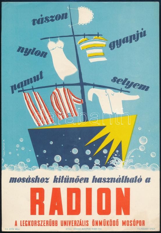 Rezes Molnár Mihály (1921- ): Radion mosópor, kisméretű reklámplakát, ... https://www.darabanth.com/hu/28-Nagyaukcio/28.1/Festmeny-mutargy-papirregiseg-egyeb/Plakat~11192/Rezes-Molnar-Mihaly-1921--Radion-mosopor-kismeretu-reklamplakat-24C39716-5-cm~II1680807