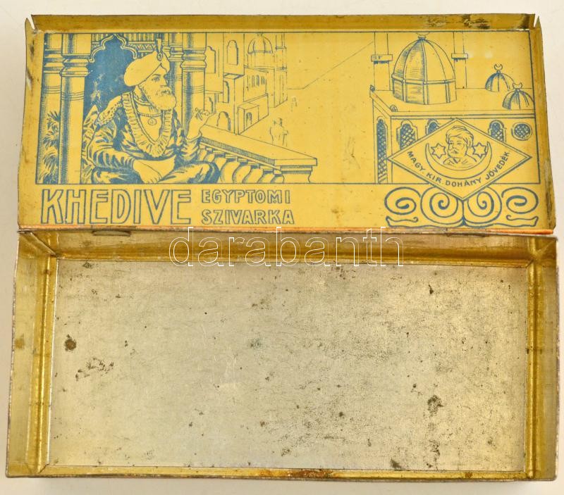 cca 1930 Khedive szivarka festett fém doboz / Hungarian tobacco box. P... https://www.darabanth.com/hu/28-Nagyaukcio/28.1/Festmeny-mutargy-papirregiseg-egyeb/Reklam~11185/cca-1930-Khedive-szivarka-festett-fem-doboz-Hungarian-tobacco-box-Painted-metal-15x7x5-cm~II1679863