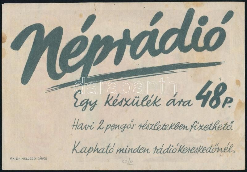 Leírás: cca 1940 Néprádió. reklám nyomtatvány 14x10 cm