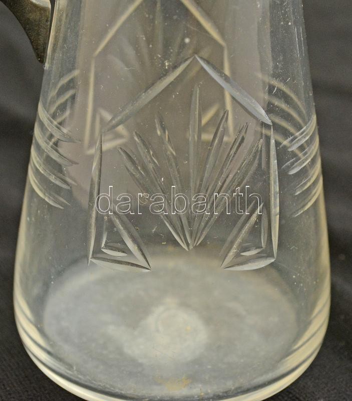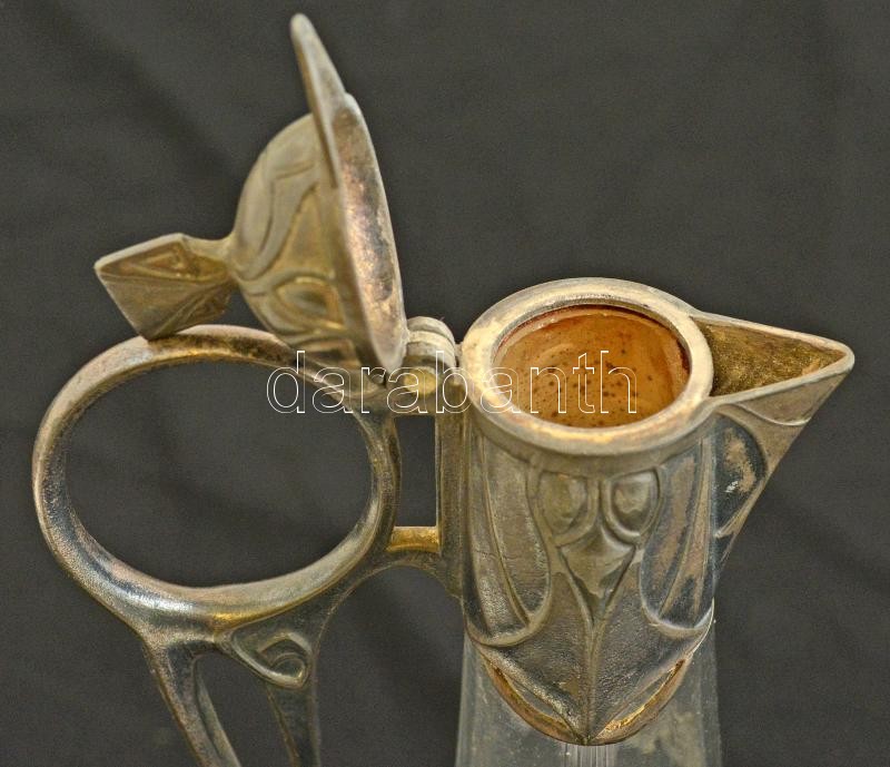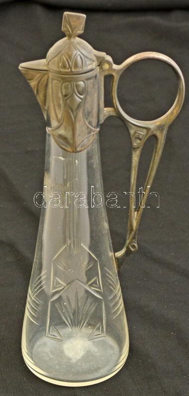 Leírás: Szecessziós ón fedeles karaffa, jelzés nélkül, csiszolt hibátlan üveggel, m:25 cm
