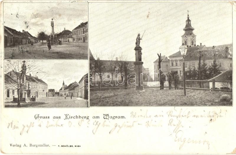 Leírás: Kirchberg am Wagram, Blick auf die Strasse mit Denkmälern. Verlag A. Burgstaller / street view with monuments (EK)