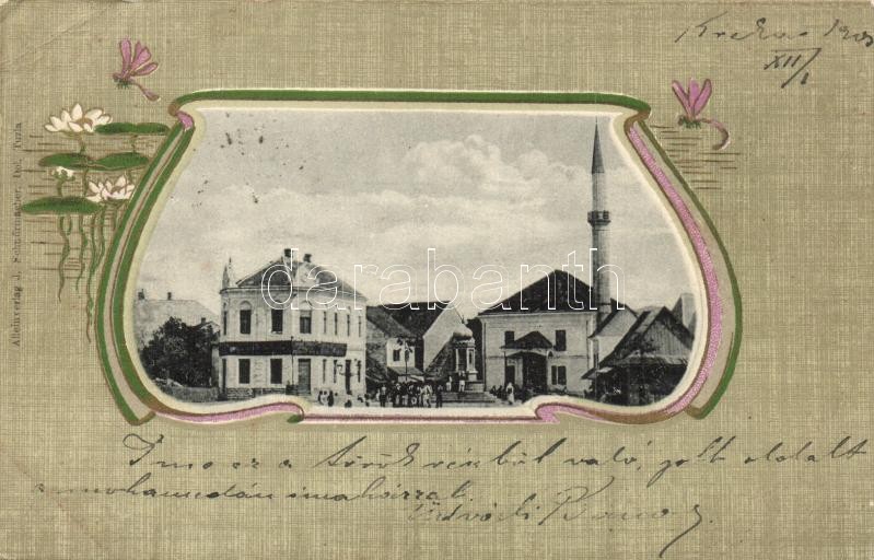 Leírás: Dolnja Tuzla, street view with mosque. Art Nouveau J. Schnürmacher (EK)