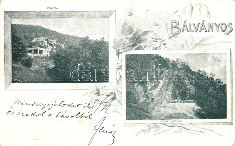 1899 Bálványos, szálloda, pension, Büdös barlang / hotel, cave. Floral https://www.darabanth.com/hu/28-Nagyaukcio/28.1/Kepeslapok/Erdely~11304/1899-Balvanyos-szalloda-pension-Budos-barlang-hotel-cave-Floral~II1685289