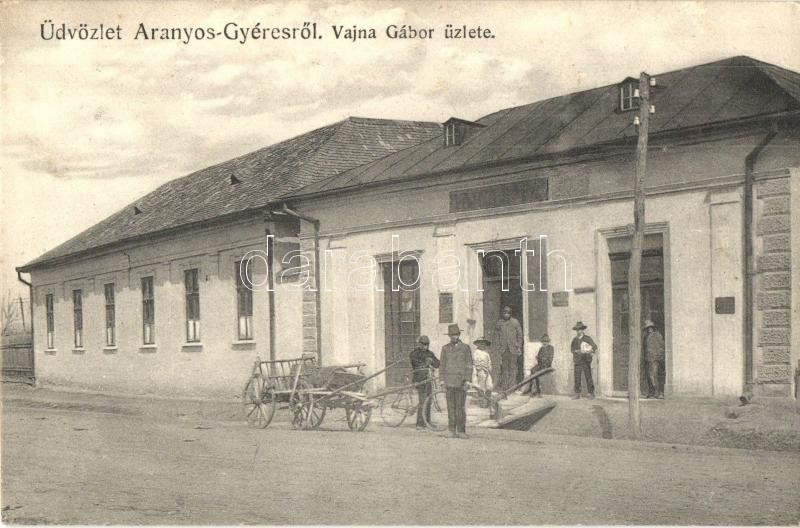 Aranyosgyéres, Campia Turzii; Vajna Gábor üzlete / shops https://www.darabanth.com/hu/28-Nagyaukcio/28.1/Kepeslapok/Erdely~11304/Aranyosgyeres-Campia-Turzii-Vajna-Gabor-uzlete-shops~II1585268