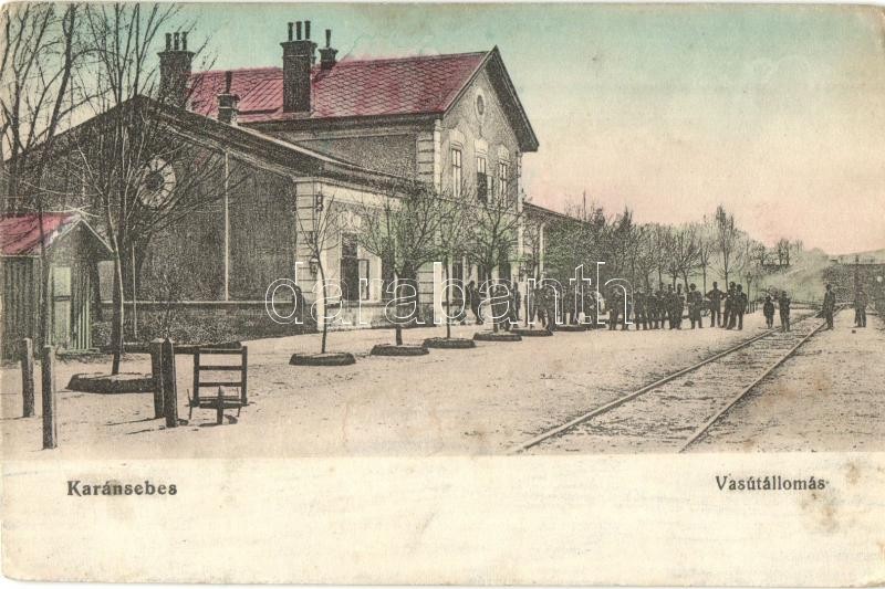 Leírás: Karánsebes, Caransebes; vasútállomás / Bahnhof / railway station (EK)