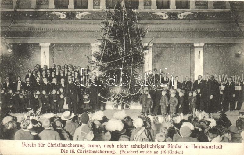 Nagyszeben, Hermannstadt, Sibiu; Keresztény egyesület karácsonyi előadása kisgyerekekkel / Verein für Christbescherung armer, noch nicht schulpflichtiger Kinder / Association for the Christianization of Poor Children with not school-age children, Christmas play