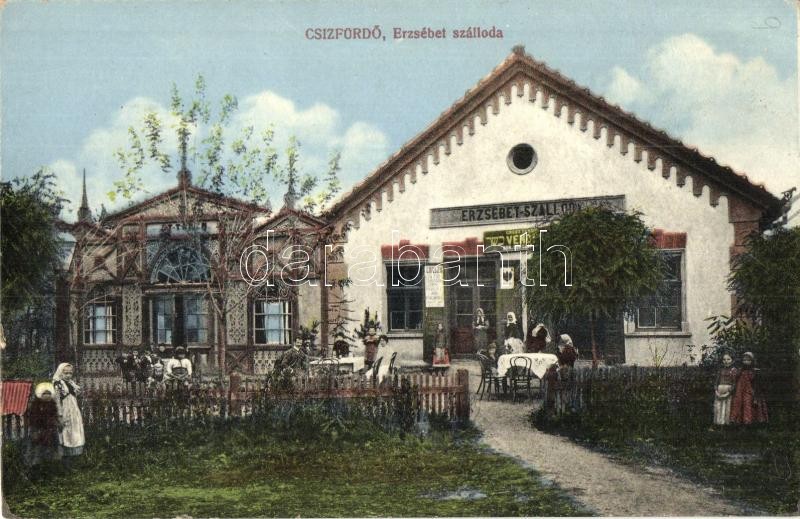 Leírás: Csízfürdő, Cíz Kúpele; Erzsébet szálloda, Grósz H. zsidó vendéglője, étterem / hotel and Jewish restaurant (fl)