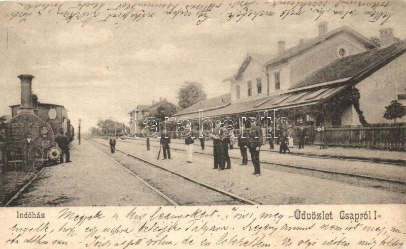 Csap, Chop; Vasútállomás, indóház, gőzmozdony / railway station with l... https://www.darabanth.com/hu/28-Nagyaukcio/28.1/Kepeslapok/Karpatalja~11306/Csap-Chop-Vasutallomas-indohaz-gozmozdony-railway-station-with-locomotive-Bahnhof~II1683340