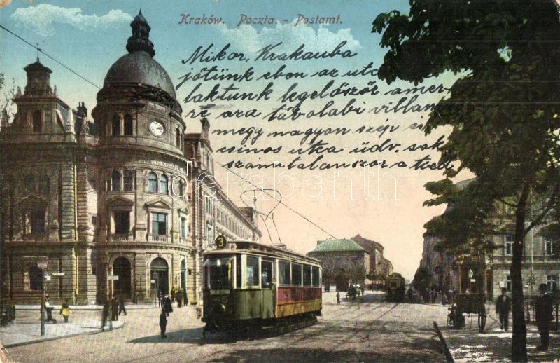 Kraków, Poczta / Postamt / post office, tram line 3 (EK) https://www.darabanth.com/hu/28-Nagyaukcio/28.1/Kepeslapok/Lengyelorszag~11330/Krakow-Poczta-Postamt-post-office-tram-line-3-EK~II1647801
