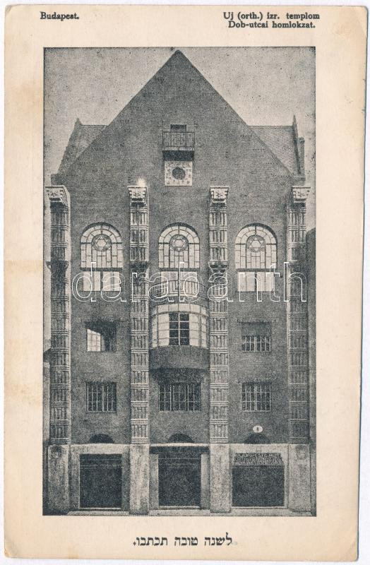 Budapest VI. Új Ortodox izraelita templom Dob utcai homlokzata, zsinag... https://www.darabanth.com/hu/28-Nagyaukcio/28.1/Kepeslapok/Magyarorszag~11303/Budapest-VI-Uj-Ortodox-izraelita-templom-Dob-utcai-homlokzata-zsinagoga-nyomtatott-heber-szov~II212011