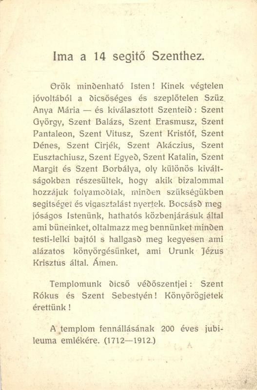 Leírás: Győr, Sziget, Győrsziget; plébánia templom főoltára, belső. Hátoldalon ima (non PC) (EK)