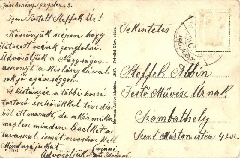Leírás: Jászberény, Kőhíd környéke, Farkas A. J. kereskedése, Jászberény-Nagykáta helyközi autóbusz. Novotha Andor kiadása 1927.
