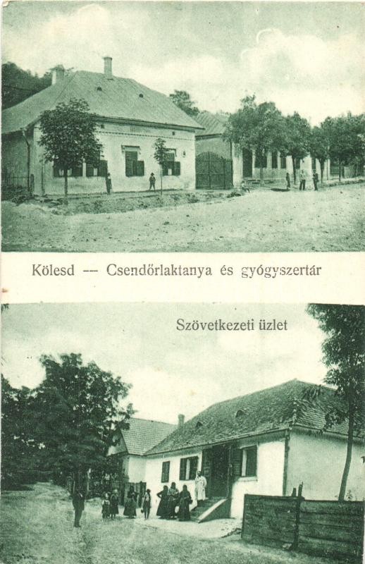 Leírás: Kölesd, Csendőrlaktanya, gyógyszertár, szövetkezeti üzlet