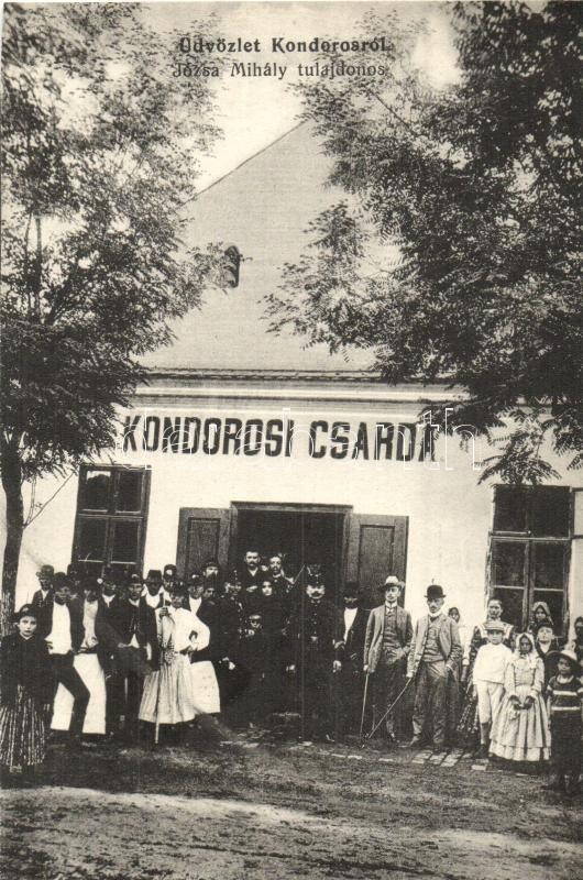 Kondoros, Józsa Mihály Kondorosi Csárdája. Kupecz Vilmos kiadása https://www.darabanth.com/hu/28-Nagyaukcio/28.1/Kepeslapok/Magyarorszag~11303/Kondoros-Jozsa-Mihaly-Kondorosi-Csardaja-Kupecz-Vilmos-kiadasa~II1687384