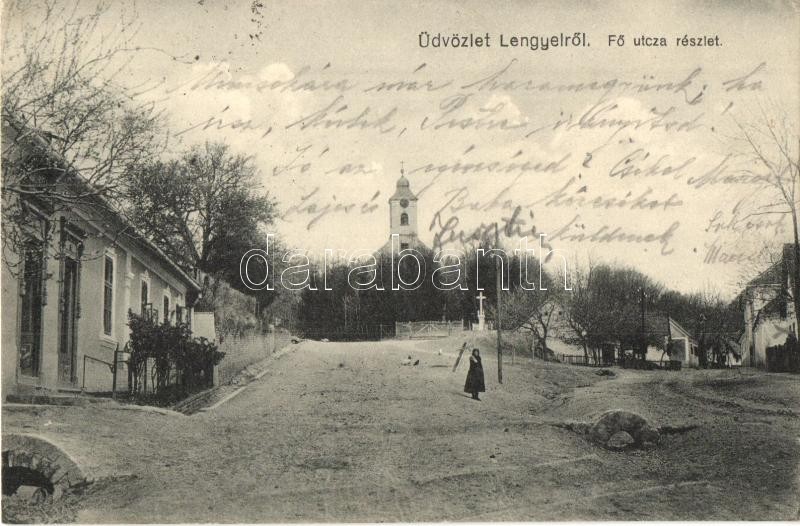 Leírás: Lengyel, Fő utca, templom, üzlet. Kiadja özv. Holub Ferenczné