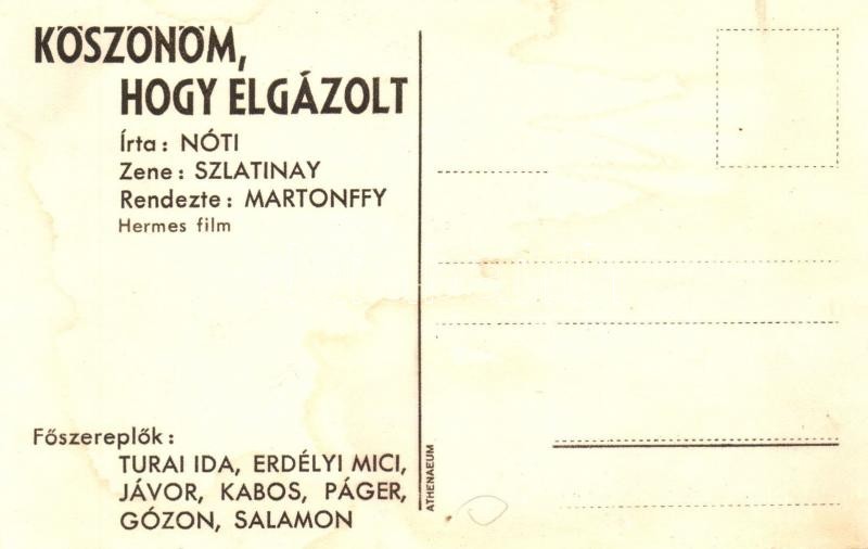 1935 Köszönöm, hogy elgázolt / Hungarian movie advertisement (fl) https://www.darabanth.com/hu/28-Nagyaukcio/28.1/Kepeslapok/Reklam~11378/1935-Koszonom-hogy-elgazolt-Hungarian-movie-advertisement-fl~II1682070