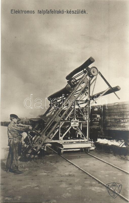 Elektromos talpfafelrakó-készülék MÁV vagonokkal. Epp és Fekete budapesti gépgyárának reklámlapja / Hungarian machine factory advertisement, electric rail fitting machine (non PC)