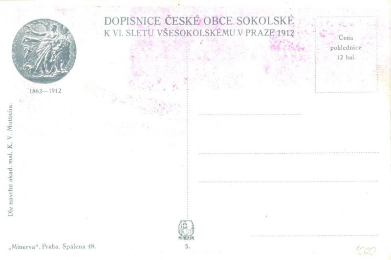 Leírás: 1912 Marathon-Penthathlon. VI. Slet Vsesokolsky v Praze / 6th Sokol meeting in Prague. advertisement card s: K. V. Mutticha
