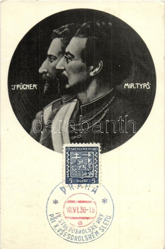 Jindrich Fügner and Dr. Miroslav Tyrs, founders and leaders of the Sokol movement + 1938 IV. Stredoskolske Hry Pri X. Vsesokolském Sletu So. Stpl. (EK)