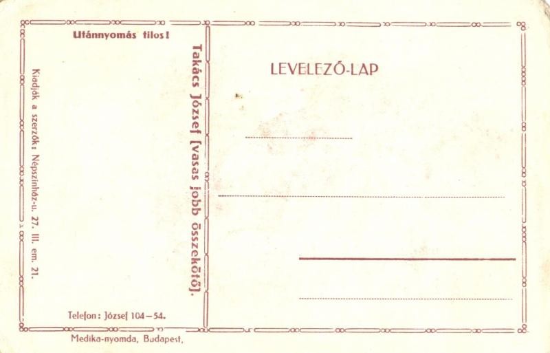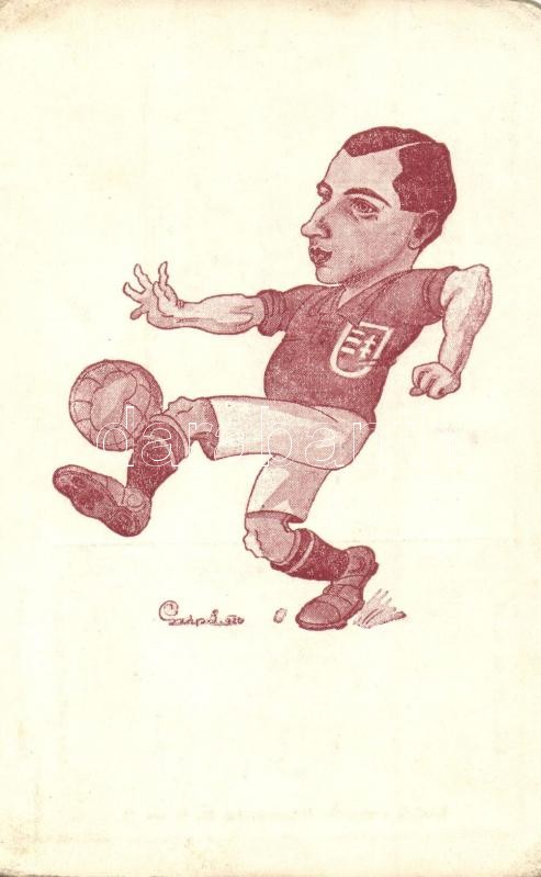 Leírás: Takács József a vasas jobb összekötője. Magyar labdarúgó művészlap. Medika-nyomda kiadása / Hungarian football player art postcard s: Szép L. (EK)