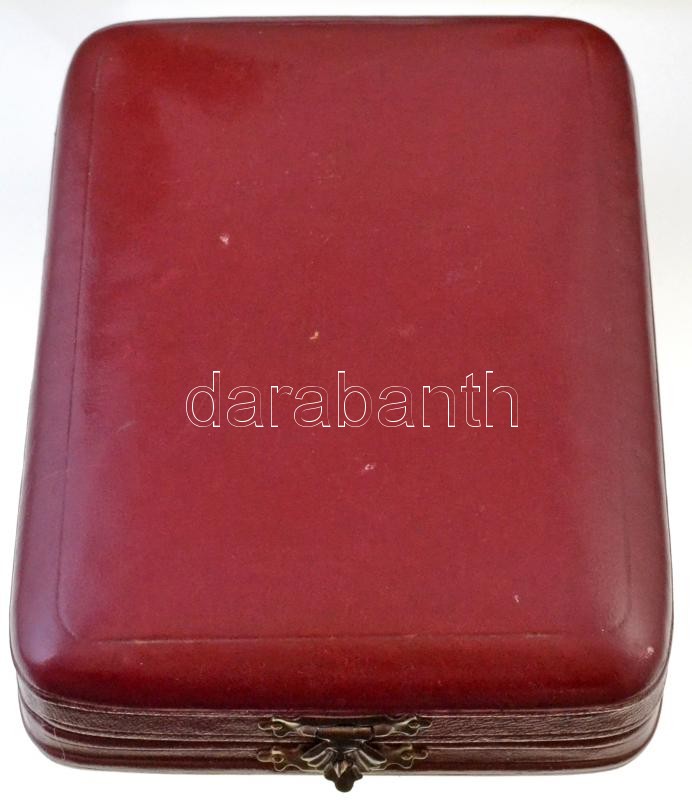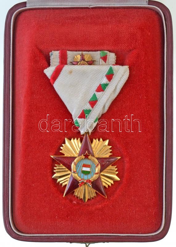 / Hungary 1957. "Order of Merit of the Hungarian People's Republic" enamelled, gilt Br decoration with original ribbon, with miniature and thin ribbon, in original case C:AU,XF tiny enamel errors