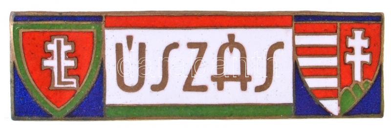~1930-1940. "ÚSZÁS - Országos Levente Úszóbajnokság" zománcozott, aranyozott fém jelvény. Nincs másik ismert példány (40mm) T:1-