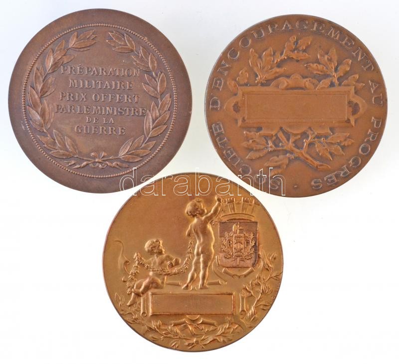Franciaország ~1920. 3db különféle Br emlékérem mindegyik előlapján "Ceres" portré, közte: "Katonai felkészülés - a díjat adományozta a Hadügyminiszter" (59,53g/50mm; 64,79g/50mm; 59,86g/49mm) T:1- / France ~1920. 3pcs of differen Br commemorative medallions, all with "Ceres" portrait on obverse, including: "Preparation Militaire - Prix offert par le Ministre de la Guerre" (59,53g/50mm; 64,79g/50mm; 59,86g/49mm) C:AU