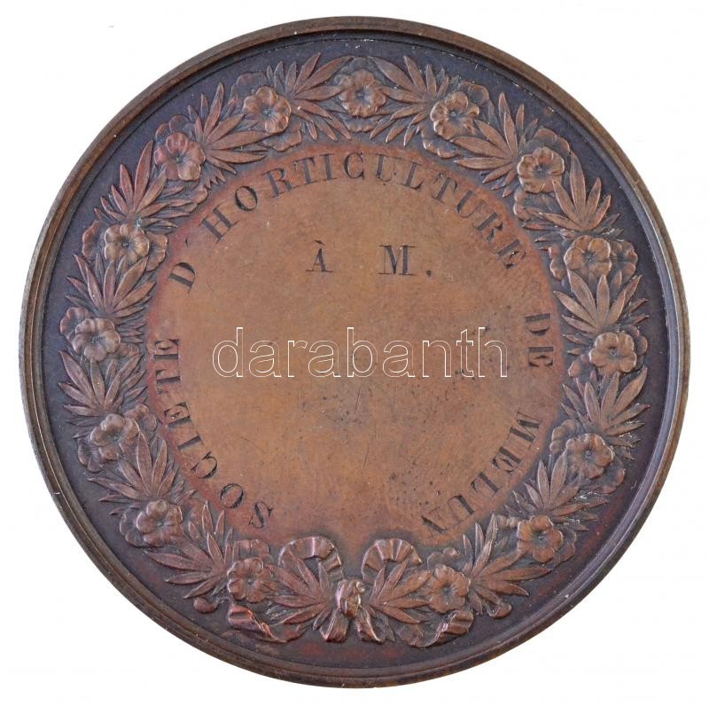 Franciaország DN "Melun-i Növénytermesztő Társaság - A.M." peremén jelzett Cu emlékérem, hátoldala gravírozva. Szign.: Pingret F. (61,72g/51mm) T:1- / France ND "Societe d'Horticulture de Melun - A.M." Cu commemorative medallion, hallmarked on edge, reverse engraved. Sign.: Pingret F. (61,72g/51mm) C:AU