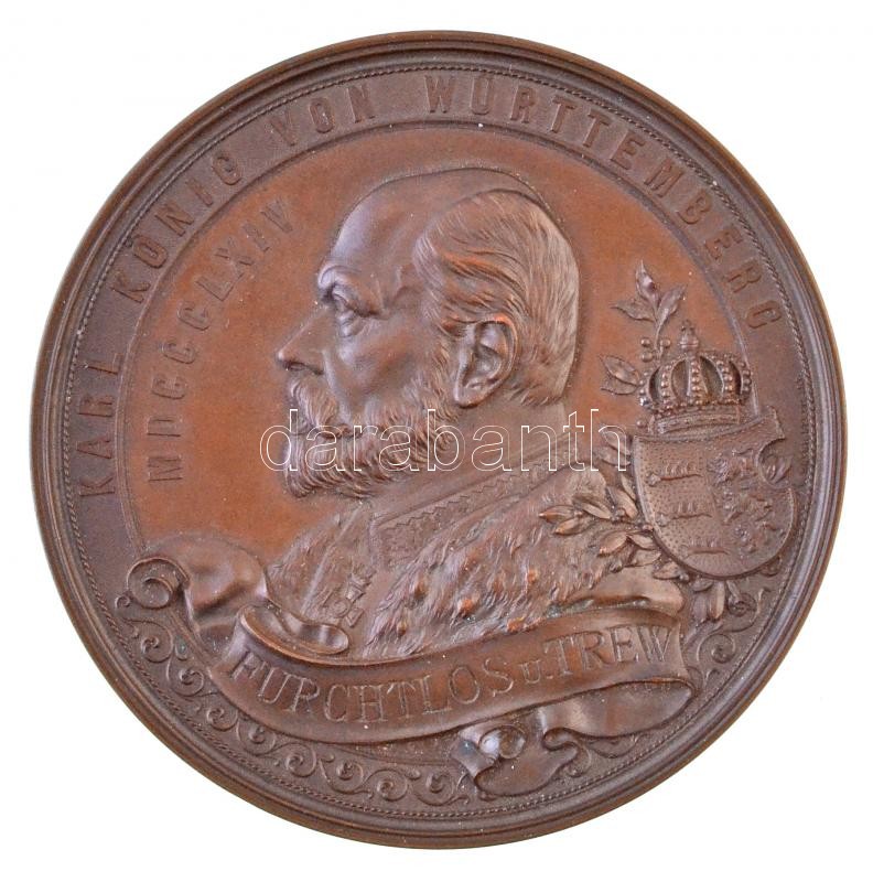 Német Birodalom / Württemberg 1891. "Károly Württemberg királya / Született: 1823. március 8. - Meghalt 1891. október 6." Br emlékérem (259,88g/89mm) T:1- / German Empire / Württemberg 1891. "KARL KÖNIG VON WÜRTTEMBERG - MDCCCLXIV - FRUCHTLOS U. TREW / KARL KÖNIG v. WÜRTTEMBERG GEB. 6. MARZ 1823 - 6. OKTOBER 1891" Br obituary commemorative medallion (259,88g/89mm) C:AU