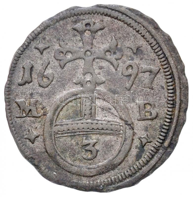 German States / Silesia 1697M-B 3 Pfennig Ag "Leopold I" Brieg (0,69g) C:XF edge error