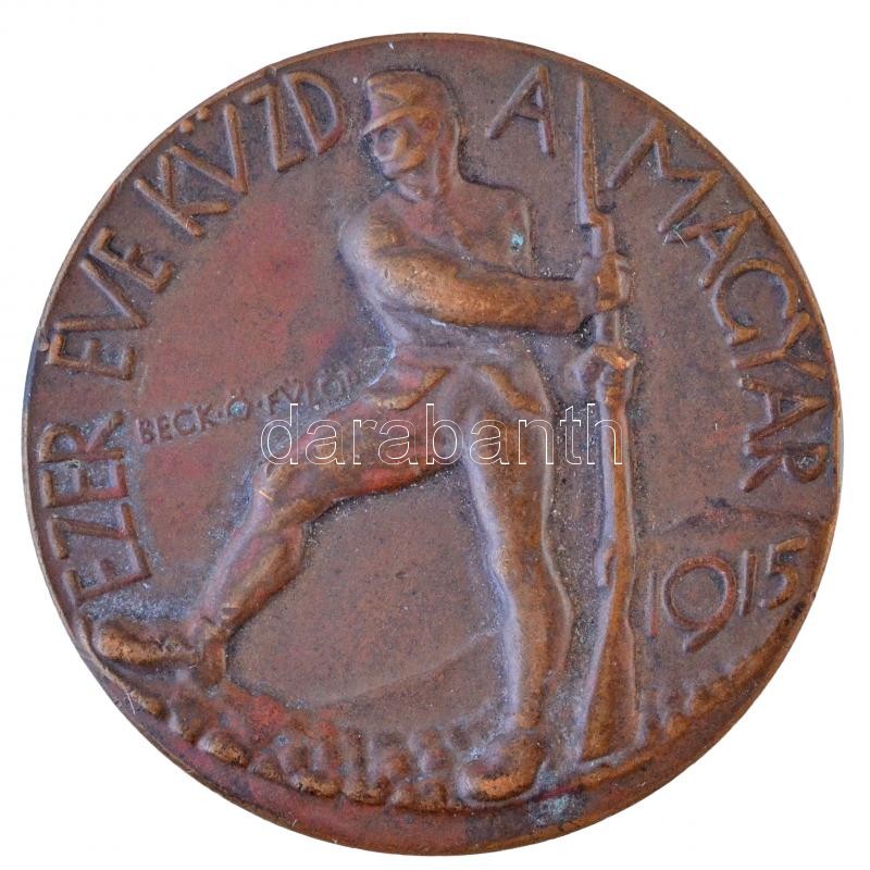 Beck Ötvös Fülöp (1873-1945) 1915. "Ezer Éve küzd a magyar" Br emlékérem (32mm) T:2